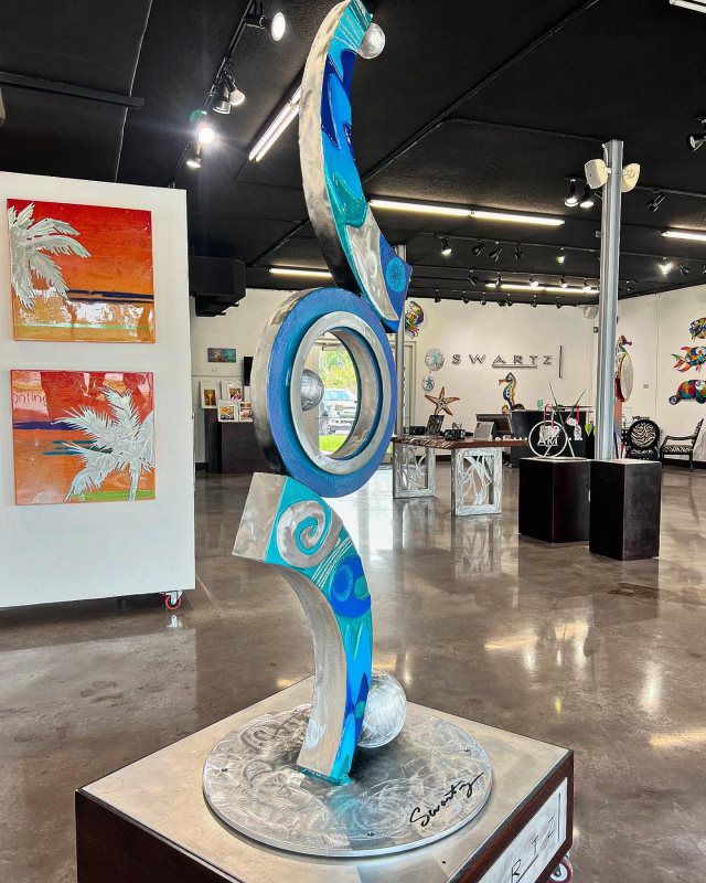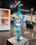Abstact sculpture. Welded aluminum free-standing sculpture that is painted with an array of saturated and translucent enamel based paints. The sculpture is then skillfully coated with an automotive finish for a long lasting and lustrous shine. Indoor or outdoor sculpture by artist Clayton Swartz.