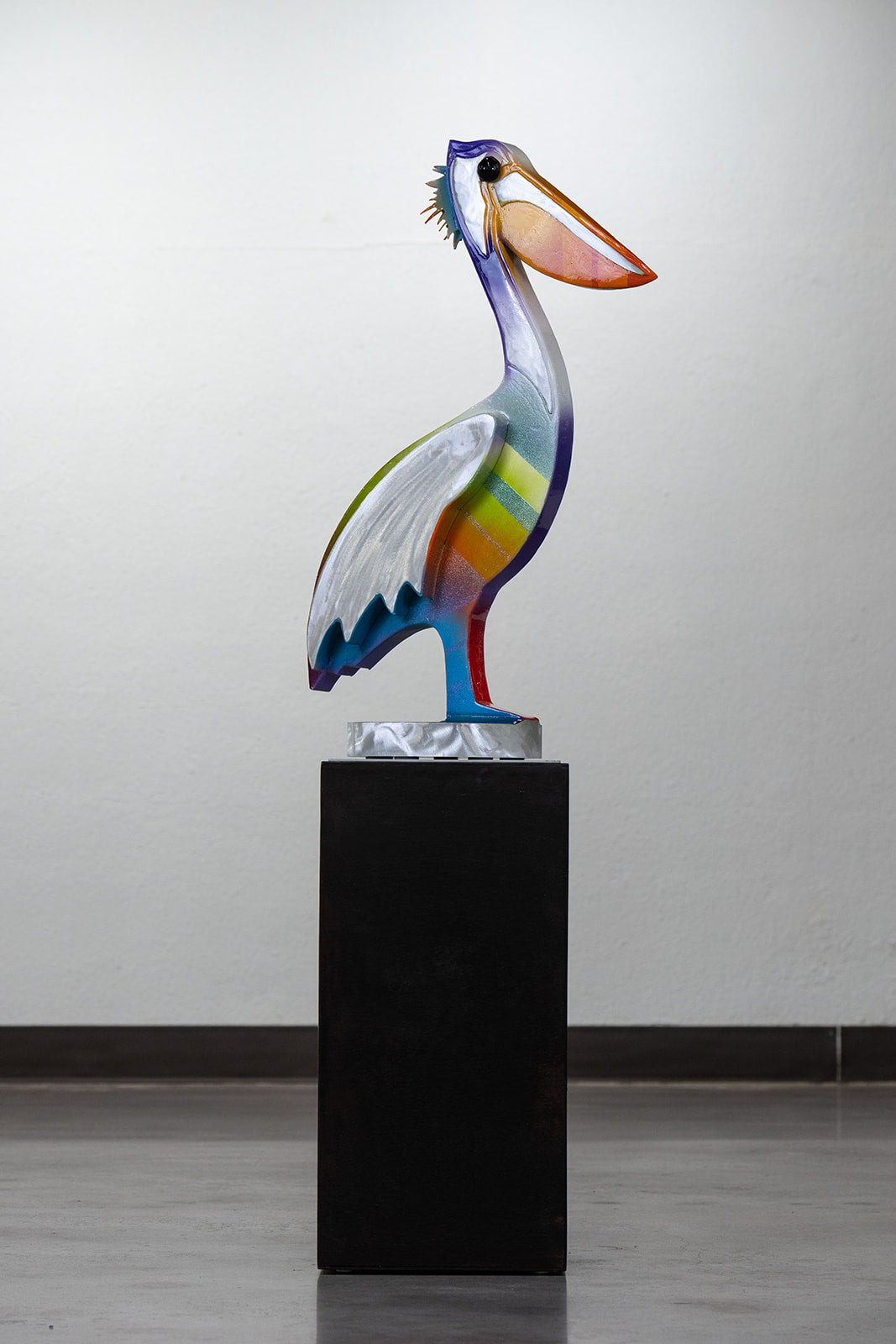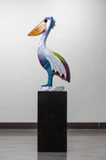 This tabletop pelican sculpture showcases the refined artistry of Clayton Swartz, a distinguished American sculptor and painter. Rendered in vibrant hues, the piece captures the distinctive character and poise of these remarkable waterbirds. The dynamic coloring and sculptural precision make it a compelling focal point for interior or exterior environments. An exceptional choice for collectors seeking authentic, handcrafted artwork that bridges fine art and natural observation.