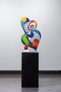 Two luminous hearts delicately poised atop a crimson sphere create a mesmerizing study in balance and emotion. This aluminum tabletop sculpture by Clayton Swartz merges abstract form with vibrant color, exploring themes of equilibrium and connection. The interplay between the geometric precision of the sphere and the organic curves of the hearts demonstrates masterful artistic vision, making this piece a compelling focal point for those who value contemporary sculpture that challenges perception while celebrating the beauty of human connection.